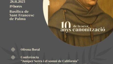 El Consell de Mallorca conmemoró el viernes 28 Noviembre el décimo aniversario de la canonización de Fra Juníper Serra con un acto en la basílica de Sant Francesc, en Palma. Como inicio del viaje a California, en el que participa nuestra Presidente Catalina Font. La conmemoración se inició con una ofrenda floral en la